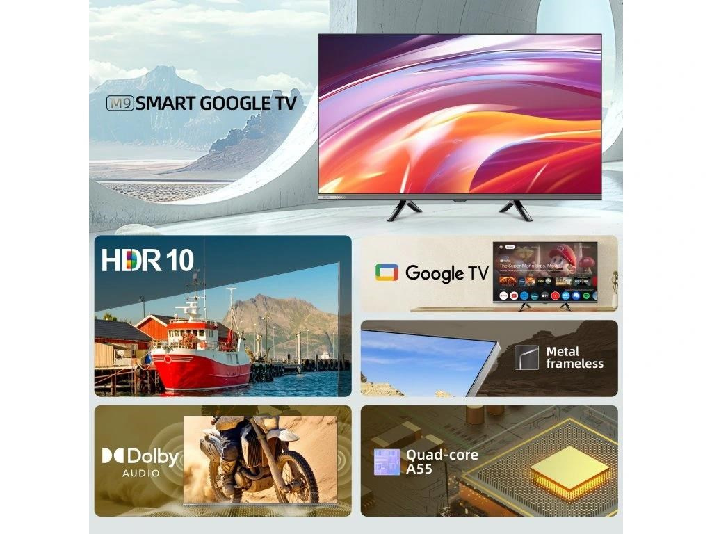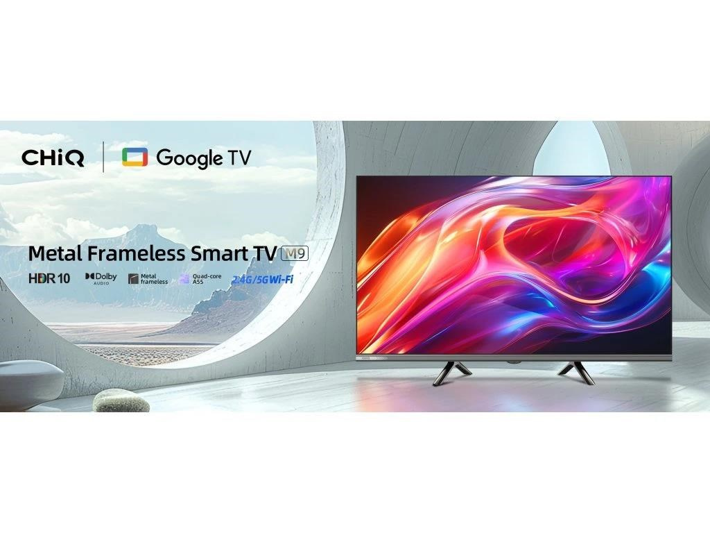 CHiQ 32“ L32M9E, metalická bezrámečková Smart Google TV s HDR10, HLG, obrazovkou s HD s rozlišením, Dolby Audio a vylepšeným zvukem dbx-tv.