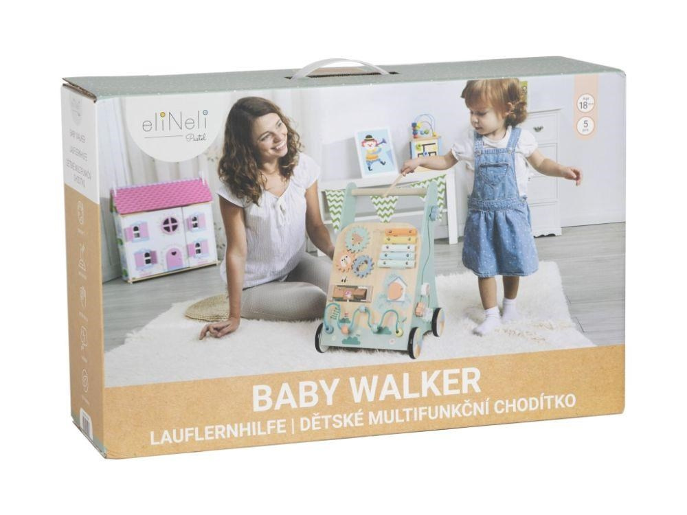 Krásné multifunkční chodítko pro děti s xylofonem nadchne každého svým zpracováním, pastelovými barvami a spoustou možností ke hře i vzdělávání. Chodítko pomůže dětem se samostatnou chůzí, zabaví je svými hracími prvky, zdokonalí jejich dovednosti. Boční strany chodítka jsou vkládačkou a dráhou s autíčky, přední strana dětem nabízí barevné kolečka, korálky, dvířka k prozkoumání, i barevný xylofon..
