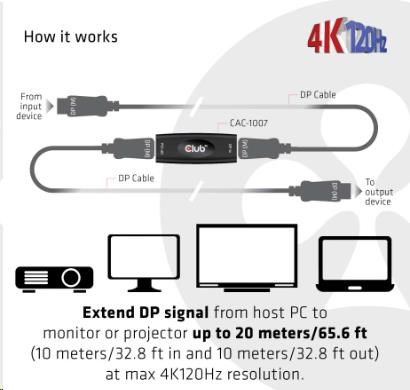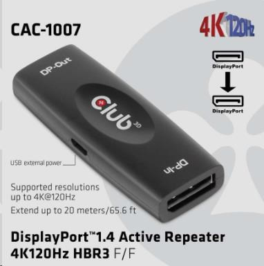 Club3D Adaptér aktivní DisplayPort 1.4 Repeater 4K120HZ HBR3 (F/F), černá