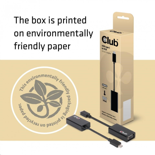 Club 3D CAC-1502 je aktivní převodník signálu VGA. Tento adaptér USB-C na VGA je nejjednodušší řešení pro připojení zdrojového zařízení s rozhraním USB 3.1 typu C s alternativním režimem DisplayPort ™ k monitoru nebo projektoru s rozhraním VGA. Adaptér je kompaktní a vysoce přenosný. Napájen přes USB-C port, adaptér nevyžaduje žádné externí napájení a je také ideální pro použití s notebooky a ultrabooks.