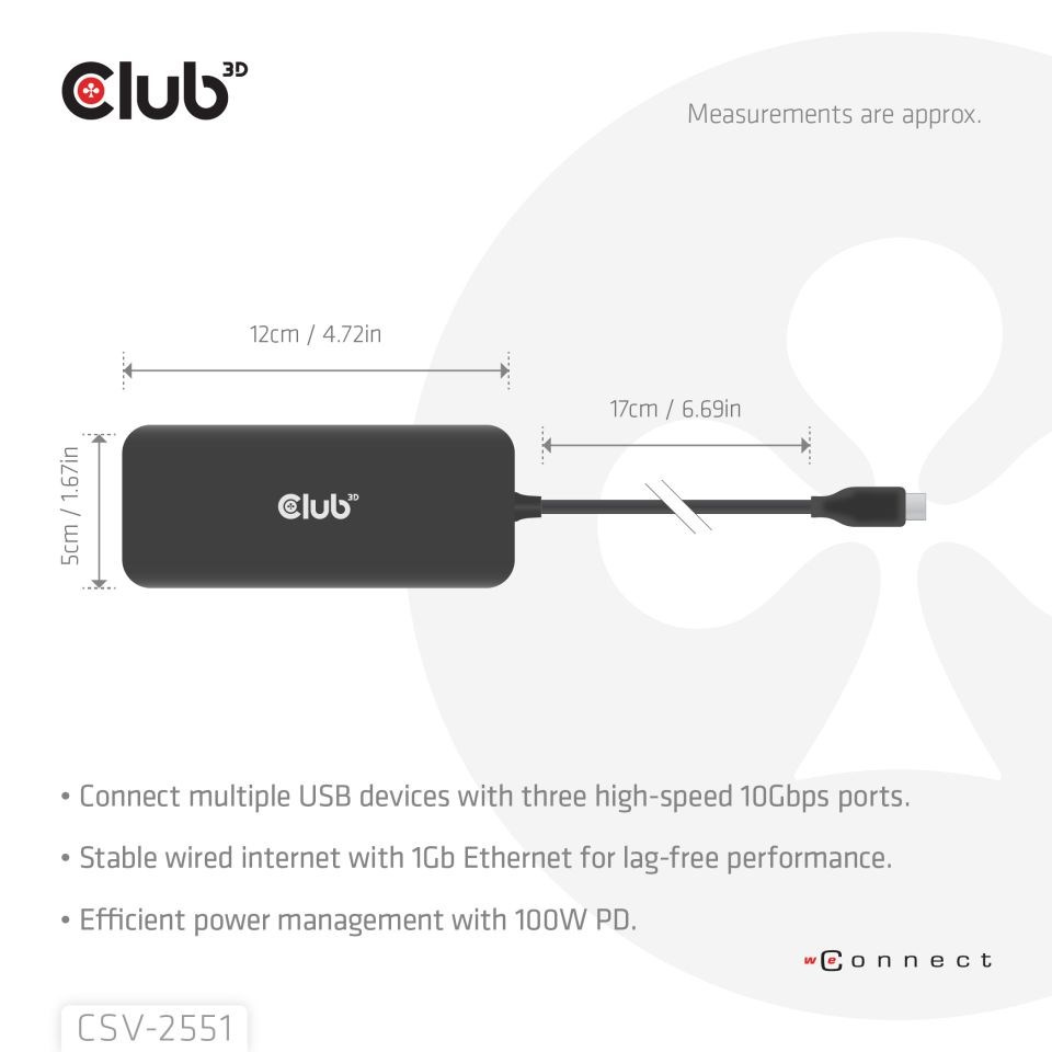Club3D Dokovací stanice USB-C 8v1, 1xHDMI, 1xDP, 1xUSB-C, 2xUSB, 1xRJ45, černá