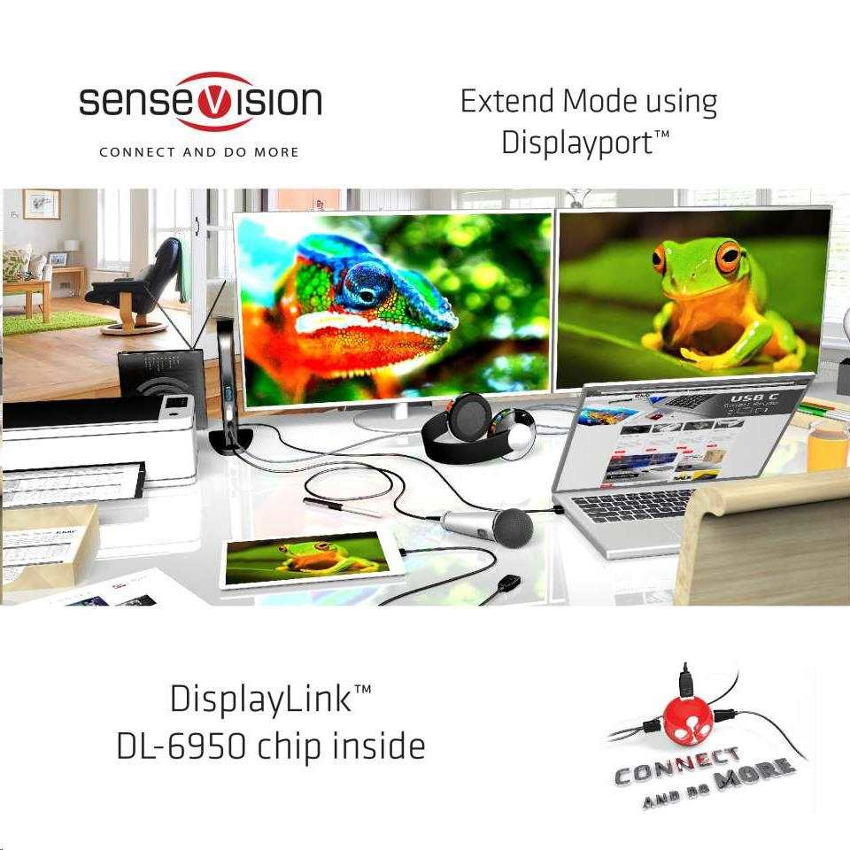 With this CSV-1460 you can now connect two Screens at 3840x2160 UHD at 60Hz resolution to almost all existing Notebooks or Tablets just by using a single USB 3.1 Gen 1 port! Featuring the advanced DisplayLink™ DL-6950 chip, you can even connect one screen at a resolution of 5K at 60Hz!