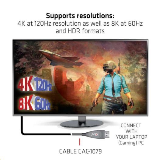 - Support 4K at 120Hz or 8K at 60Hz and HDR formats • Supports HBR3, HDCP1.4/2.2