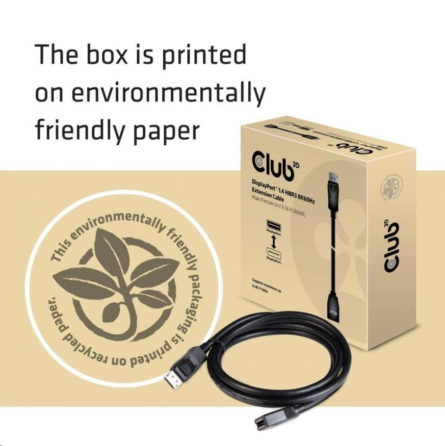 Club3D Kabel prodlužovací DisplayPort 1.4 HBR3 8K60Hz (M/F), 2m, 28 AWG
