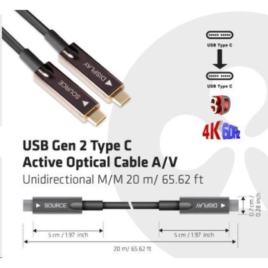 Club3D Kabel USB 3.2 typ C Gen2, aktivní, (M/M), 20m, optický, aktivní, unidirectional, A/V