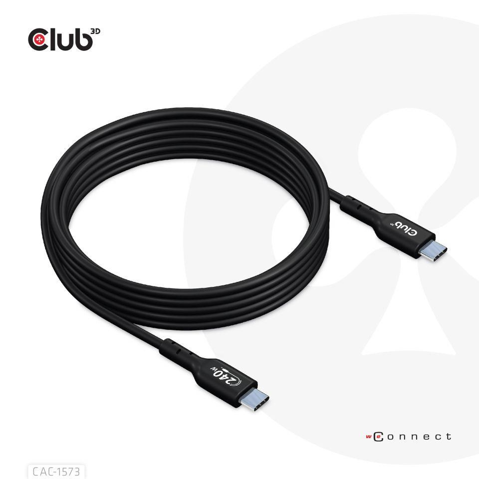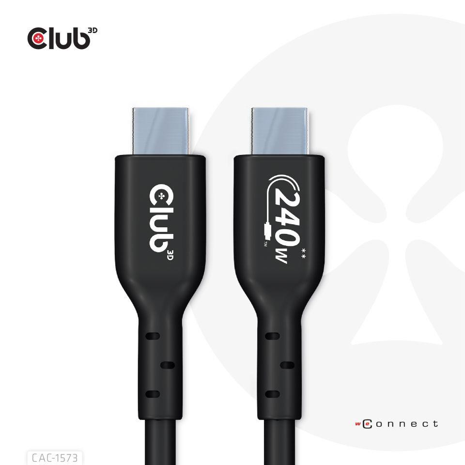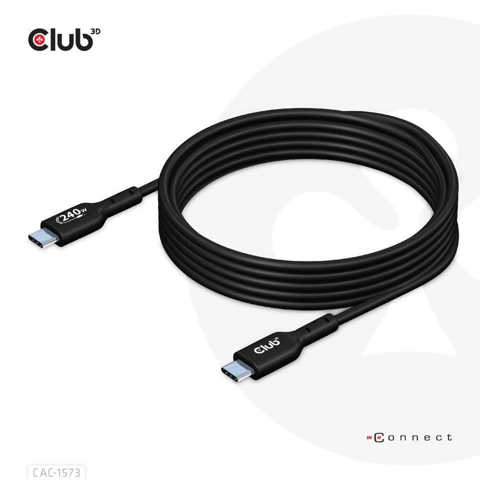 The Club 3D CAC-1573 USB2.0 Type-C Bi-Directional Cable, Data 480Mb, PD 240W(48V/5A) EPR, Extended Power Range M/M 2m/6.56ft connects your Notebook, Tablet or Phone with USB Type-C output to your favorite existing Peripherals, Accessories and Chargers. It enables Data and Power over a single cable and both ways. This cable supports USB2.0 data up to 480Mbps and up to 240Watt(48V/5A) output for Downstream charging or powering your Notebook, Tablet or Smartphone.