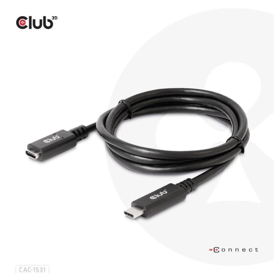 The Club 3D CAC-1531 USB Gen1 Type-C Extension Cable 5Gbps 60W(20V/3A) 4K60Hz M/F 1m/3.28ft connects your Notebook, Tablet or Phone with USB Type-C output to your favorite existing Peripherals, Accessories and Chargers. It enables Video, Data and Power over a single cable and both ways. This cable supports USB Gen1 Video up to 4K60Hz, data up to 5Gbps and up to 60Watt(20V/3A) output for Downstream charging or powering your Notebook, Tablet or Smartphone.