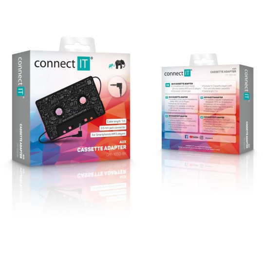 CONNECT IT AUX kazetový adaptér, 3,5 mm jack, černá
