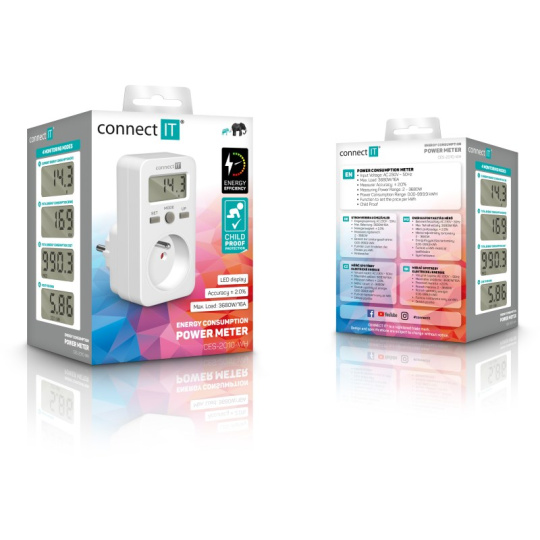Digitální měřič CONNECT IT "PowerMeter" s jednoduchým designem slouží k měření spotřeby elektrické energie různých domácích spotřebičů. Měřič disponuje velkým LED displejem a jednoduchým ovládáním. Díky tomu je velmi přehledný a spolehlivý.