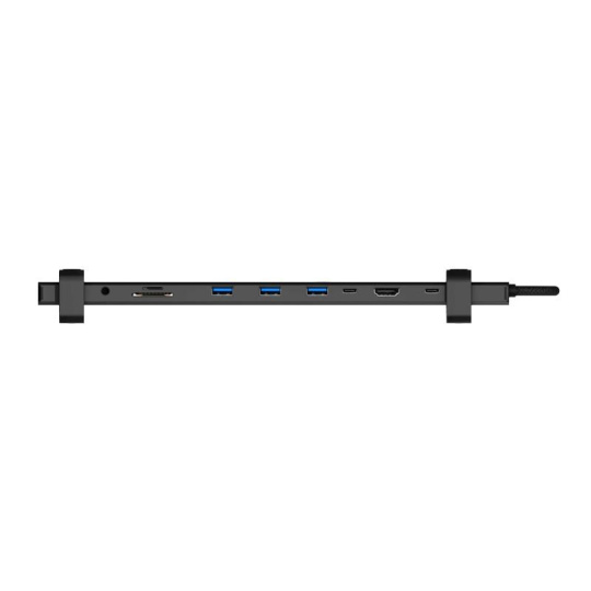 Prakticky tvarovaná USB-C dokovací stanice "Multi10in1" pro připojení až 10 periferií (2x USB-C, 1x HDMI, 3x USB-A, 3.5 mm jack, RJ45 Gigabit Ethernet. SD karta, MicroSD karta).
