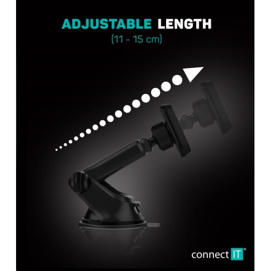 - Nastavitelná délka ramena v rozsahu 11 až 15 cm vyhovuje i velmi zkoseným čelním sklům nebo atypickým palubním deskám