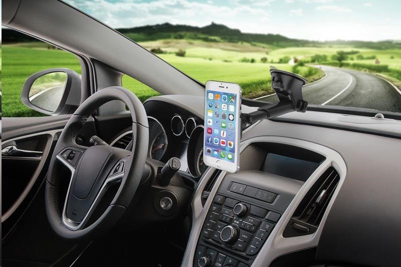 - Připevnění na palubní desku nebo čelní sklo automobilu