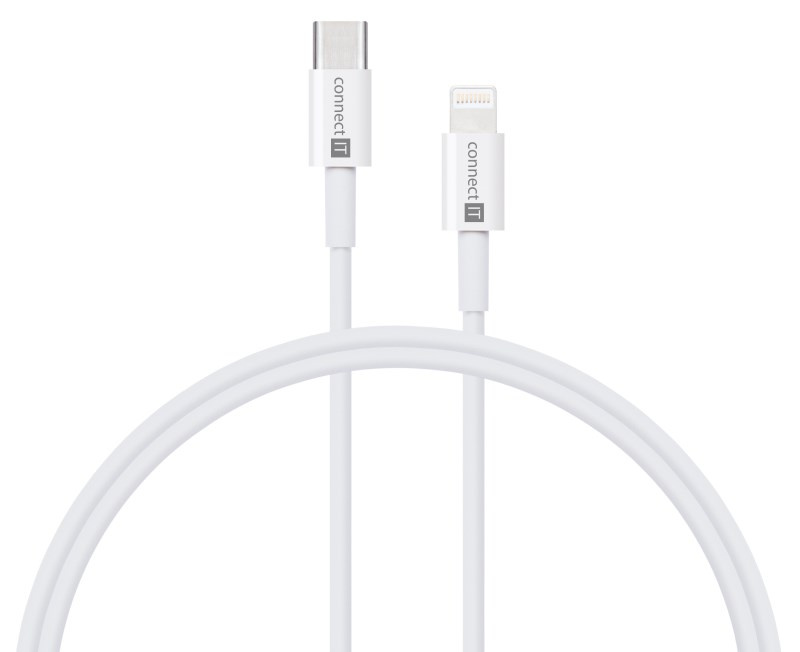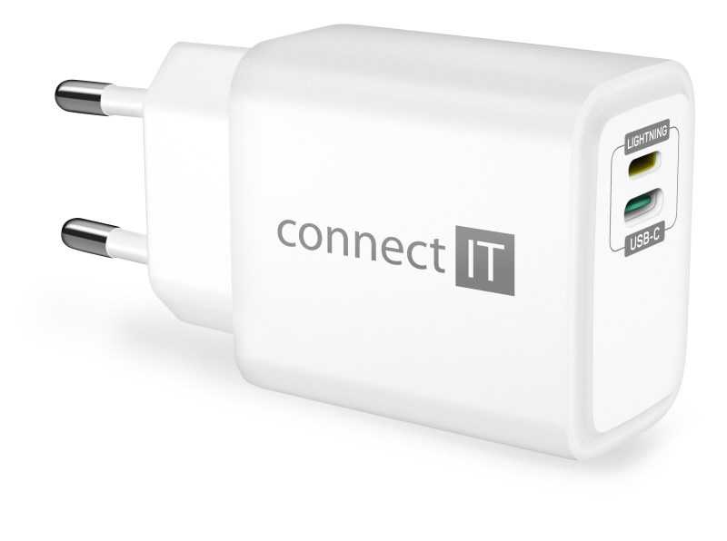 CONNECT IT Duplex nabíjecí adaptér 1xLightning, 1×USB-C, 20W, 1xLightning - USB-C kabel, bílá