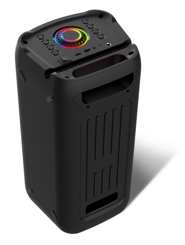 V horní části reproduktoru se nachází všechna potřebná ovládací tlačítka a nechybí ani vestavěný mikrofonu s funkcí hlasitého hands-free pro uskutečňování telefonních hovorů - stačí přijmout hovor a hlas volajícího slyšíte přímo v reproduktoru. Díky dodávánemu externím mikrofonu a KARAOKE funkcím na dálkovém ovládání si užijte spoustý zábavy s přáteli. Baterie s kapacitou 4500 mAh zabezpečí až 10 hodiny přehrávání a lze ji nabíjet pomocí dodávaného USB-C kabelu z jakékoliv USB nabíječky nebo power banky.