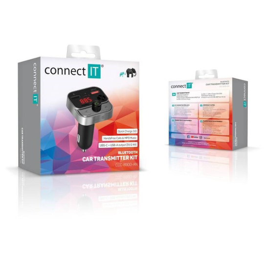 Bluetooth transmitter v kombinaci se tříportovou nabíječkou je multifunkčí zařízení do vašeho automobilu, díky němuž můžete nejen nabíjet mobilní zařízení, ale také poslouchat hudbu ze svého USB flash disku nebo mobilního telefonu. Transmitter je vybaven digitálním displejem a čtyřmi ovládacími tlačítky pro jednoduché a komfortní ovládání všech funkcí. Samozřejmostí u tohoto zařízení je i možnost bezdrátového spárování s vašim mobilním telefonem pro uskutečňování telefonních hovorů. Pro tento účel nechybí ani vestavěný mikrofon.