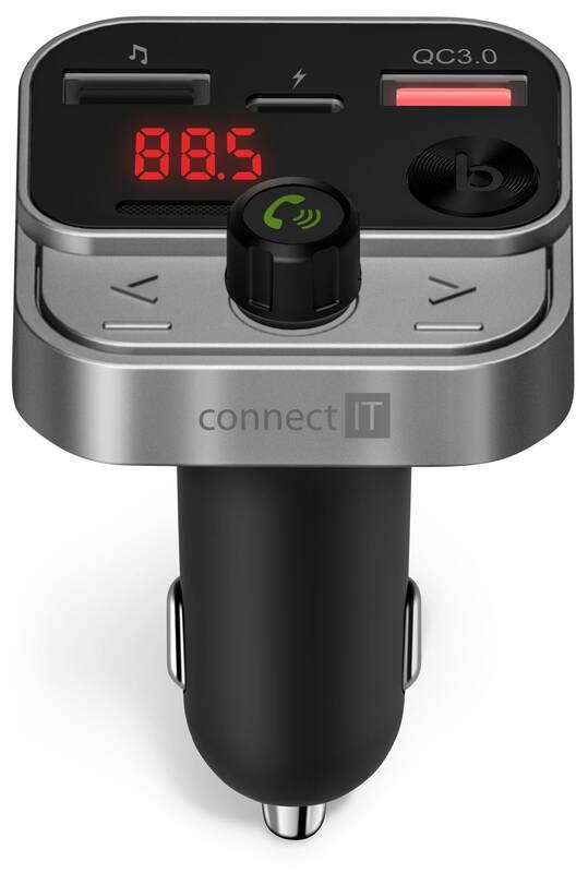 CONNECT IT InCarz Bezdrátový FM transmitter, 2x USB-A + 1x USB-C, Stříbrno-černá