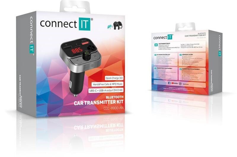 Bluetooth transmitter v kombinaci se tříportovou nabíječkou je multifunkčí zařízení do vašeho automobilu, díky němuž můžete nejen nabíjet mobilní zařízení, ale také poslouchat hudbu ze svého USB flash disku nebo mobilního telefonu. Transmitter je vybaven digitálním displejem a čtyřmi ovládacími tlačítky pro jednoduché a komfortní ovládání všech funkcí. Samozřejmostí u tohoto zařízení je i možnost bezdrátového spárování s vašim mobilním telefonem pro uskutečňování telefonních hovorů. Pro tento účel nechybí ani vestavěný mikrofon.