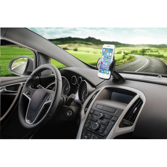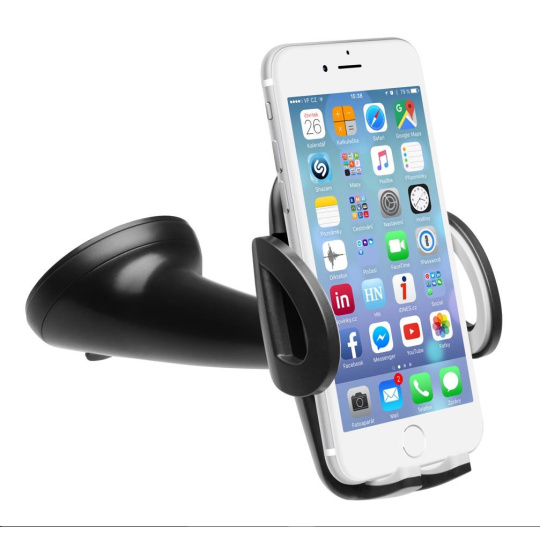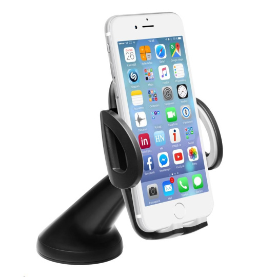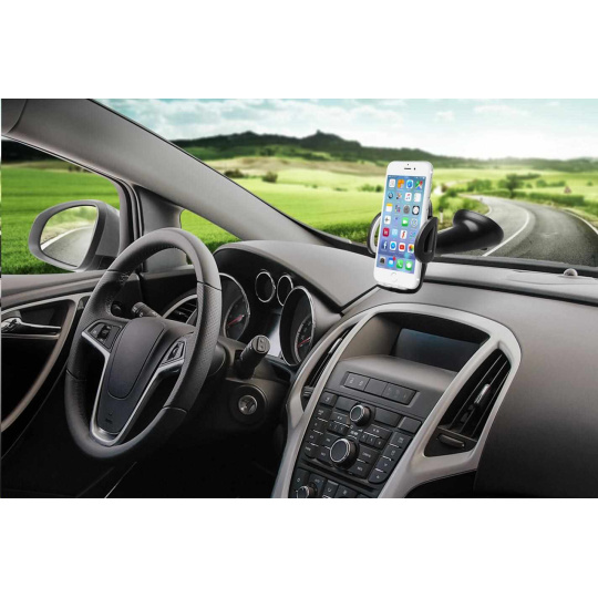 Univerzální držák do auta slouží k uchycení mobilního telefonu na sklo nebo palubní desku vozu.