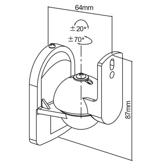 Univerzální nástěnné držáky na reproduktory Vlastnosti: - Náklon: ±20° - Rotace: ±70° - Balení obsahuje 2 držáky včetně šroubů a hmoždinek - Max. zatížení: 3,5 kg - Kód: CI-122.