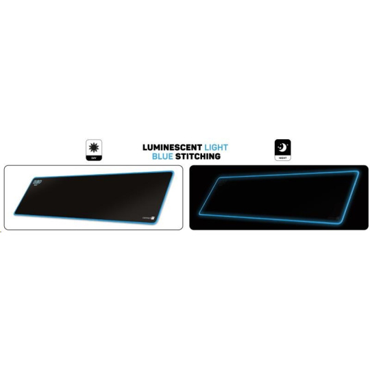 Podložka má měkký, příjemný povrch. Při velikosti herní plochy 886 × 245 mm vám nikdy nedojde prostor k pohybu. Velkou výhodou je pogumovaná protiskluzová spodní strana a antistatický povrch, po kterém bez problému bude jezdit každá myš. Materiál byl navržen tak, aby odpuzoval vodu a nečistoty. Podložka má obšité okraje speciální kvalitní svítící nití, která ve tmě jemně svítí.