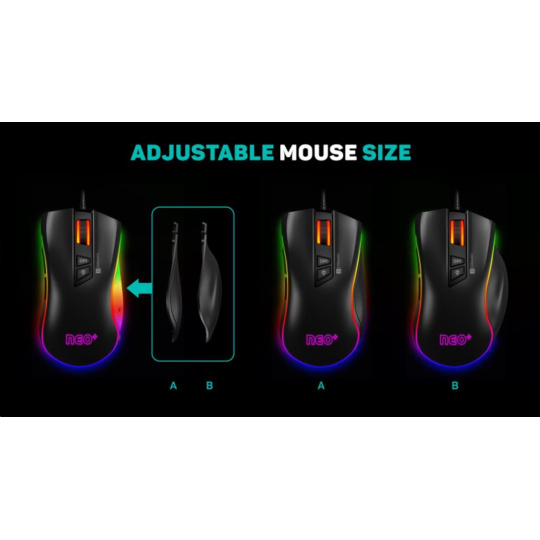 Profesionální gamingová myš NEO+ SERIES edition pro hráče počítačových her s osmi nastavitelnými tlačítky, precizním optickým senzorem a plnou podporou uživatelských maker.
