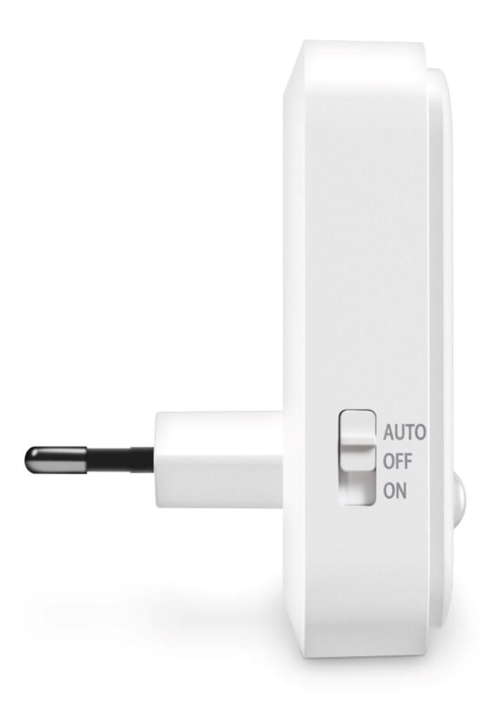 Světlo disponuje posuvníkem, který umožňuje zapnout/vypnout světlo a nastavit režim automatického zapnutí při zaznamenání pohybu v šeru. Světlo stačí jednoduše zapojit do libovolné zásuvky a při příkonu 0,80 W se nemusíte bát spotřeby elektrické energie. LED zdroj světla disponuje světelným tokem 30 lumenů.