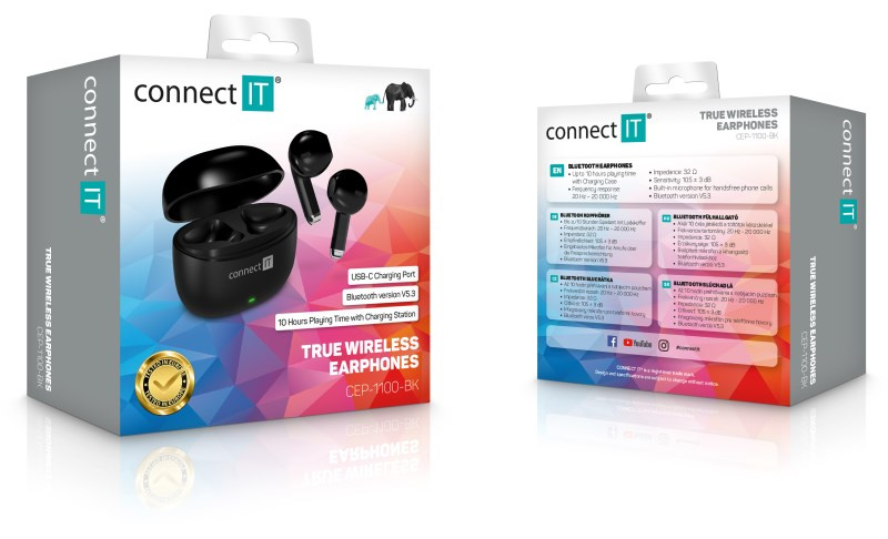 CONNECT IT Sluchátka True Wireless SonicBass, špunty do uší s mikrofonem, Bluetooth, černá