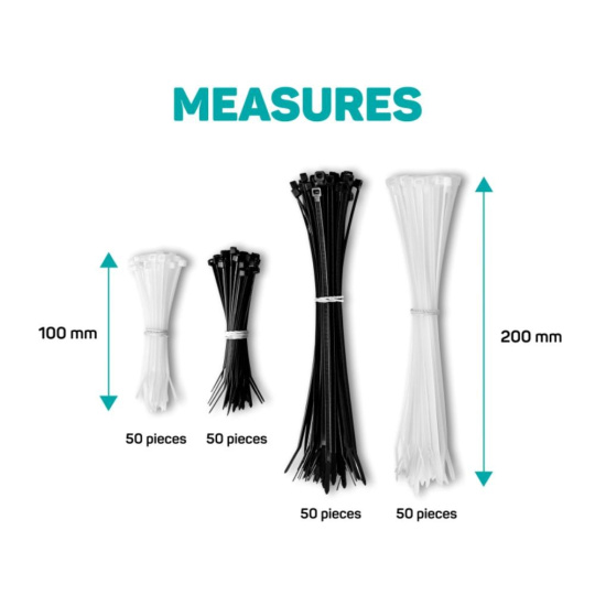 | Velikost a počet | - 50ks (černá) 100mm - 50ks (bílá) 100mm - 50ks (černá) 200mm - 50ks (bílá) 200mm |