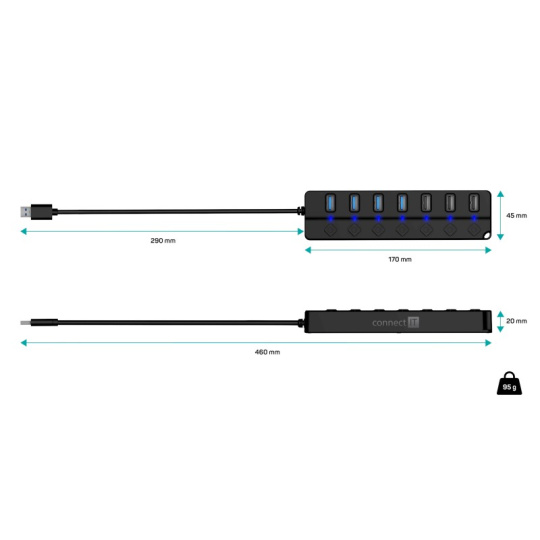 CONNECT IT USB Hub Mighty Switch 2, 4xUSB 3.0, 3xUSB 2.0, externí, černá
