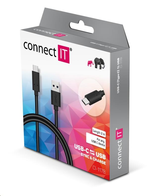 CONNECT IT Wirez USB-C (Type C) -> USB-A, USB 3.1 Gen 1, černá, 2 m
