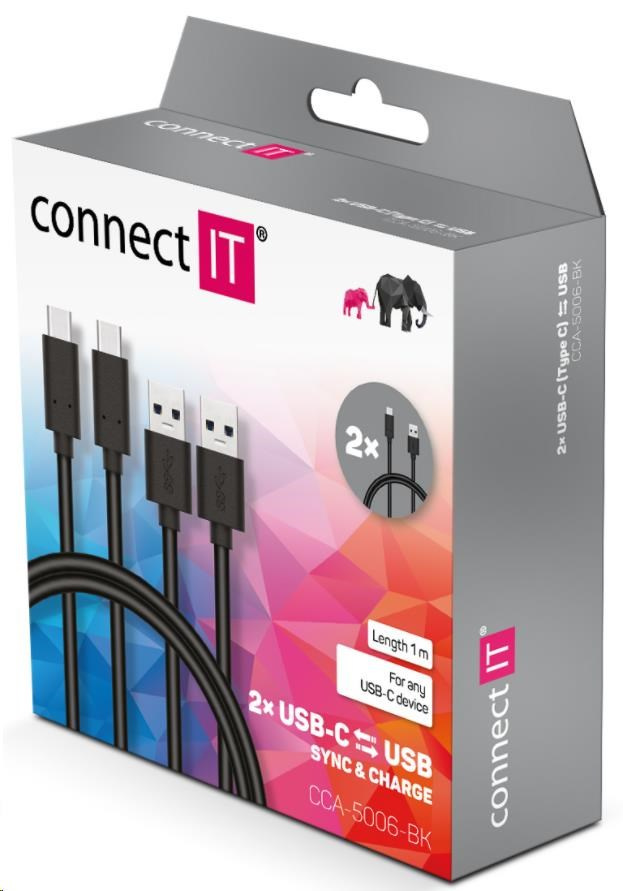 CONNECT IT Wirez USB-C (Type C) -> USB-A, USB 3.1 Gen 1, černý, 1 m (2 ks v balení)