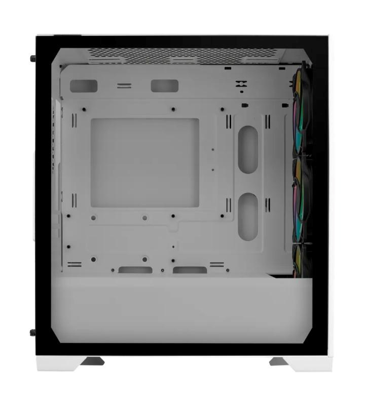 Elite 301 je vybaven velkou sací mřížkou a 3x 120mm ventilátory ARGB, které zajišťují hladký a efektivní chod systému. Plně černý povlak a přiložený kryt PSU umožňuje čisté sestavení, které je vizuálně přitažlivé i funkční.