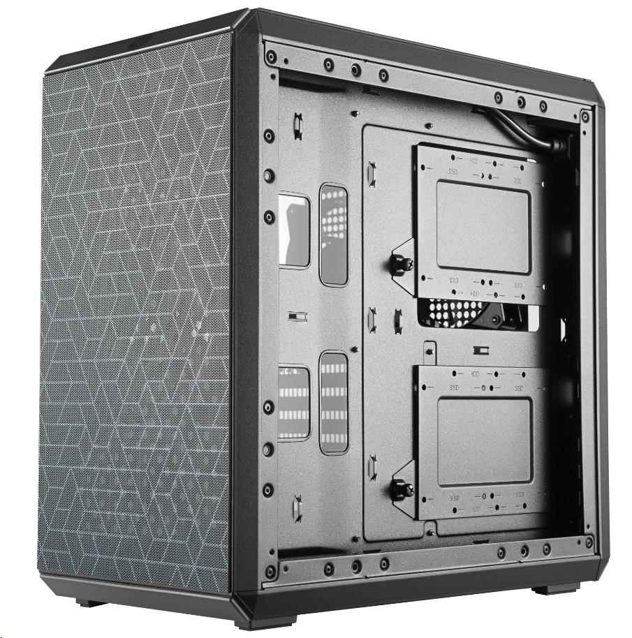 MasterBox Q500L podporuje standardní základní desku ATX a napájecí zdroj ve velmi kompaktním uspořádání. Díky stejným vnějším rozměrům jako MasterBox Q300L byla podpora standardní základní desky ATX umožněna maximálním využitím vnitřního prostoru.