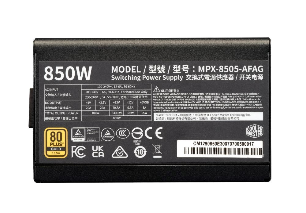 Cooler Master zdroj ELITE Gold 850W FM, 120mm, Plně modulární, 80 Plus Gold, ATX 3.1