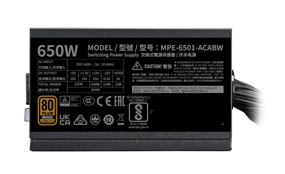 Cooler Master zdroj MWE Bronze 650W V3, 120mm, 80+ Bronze