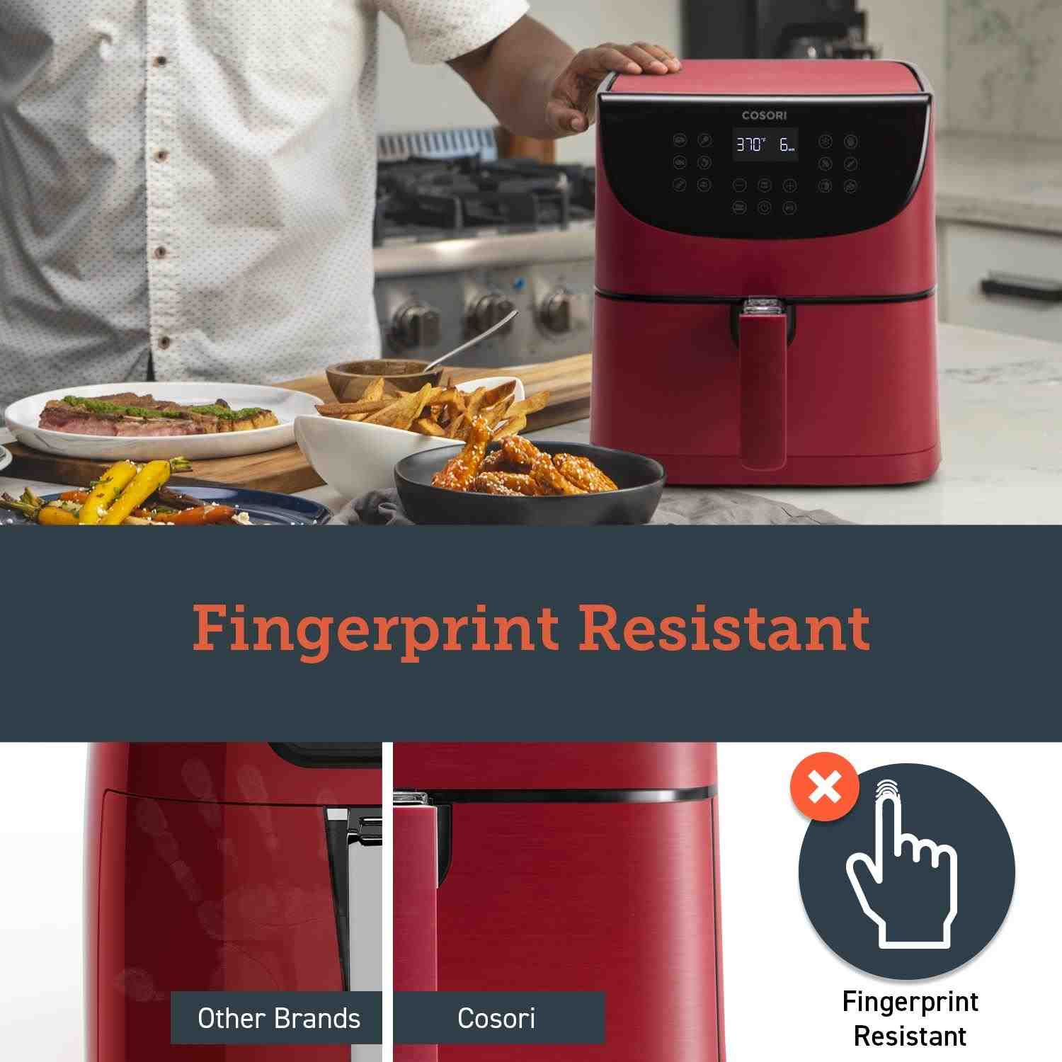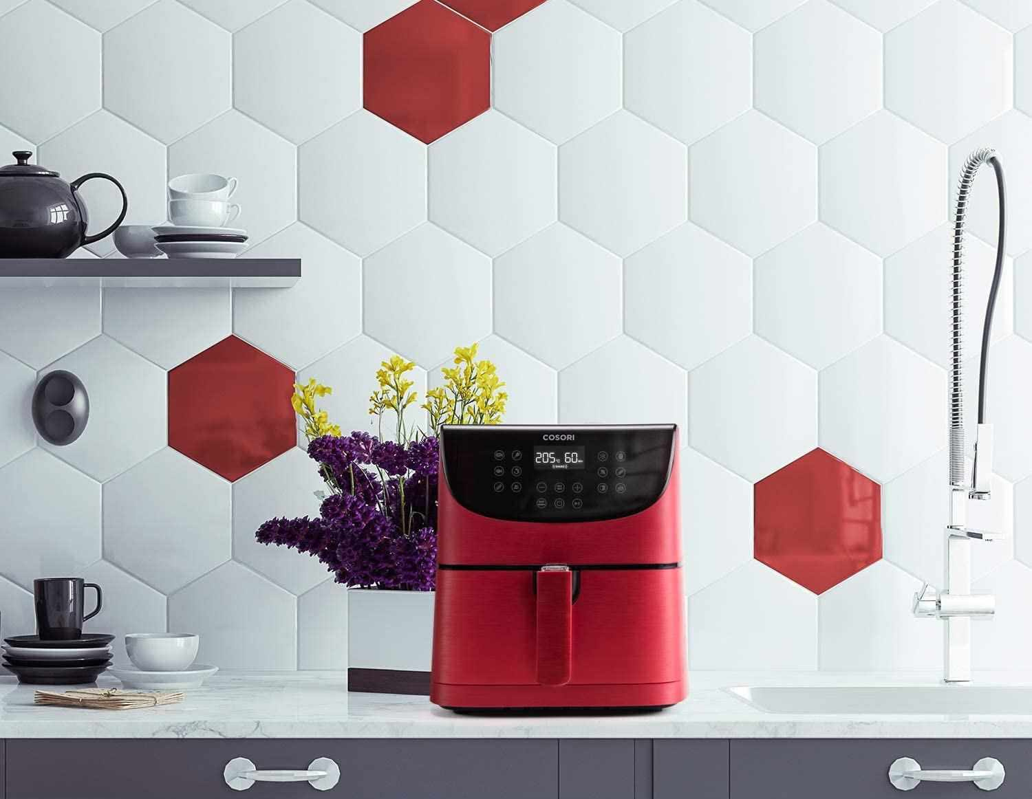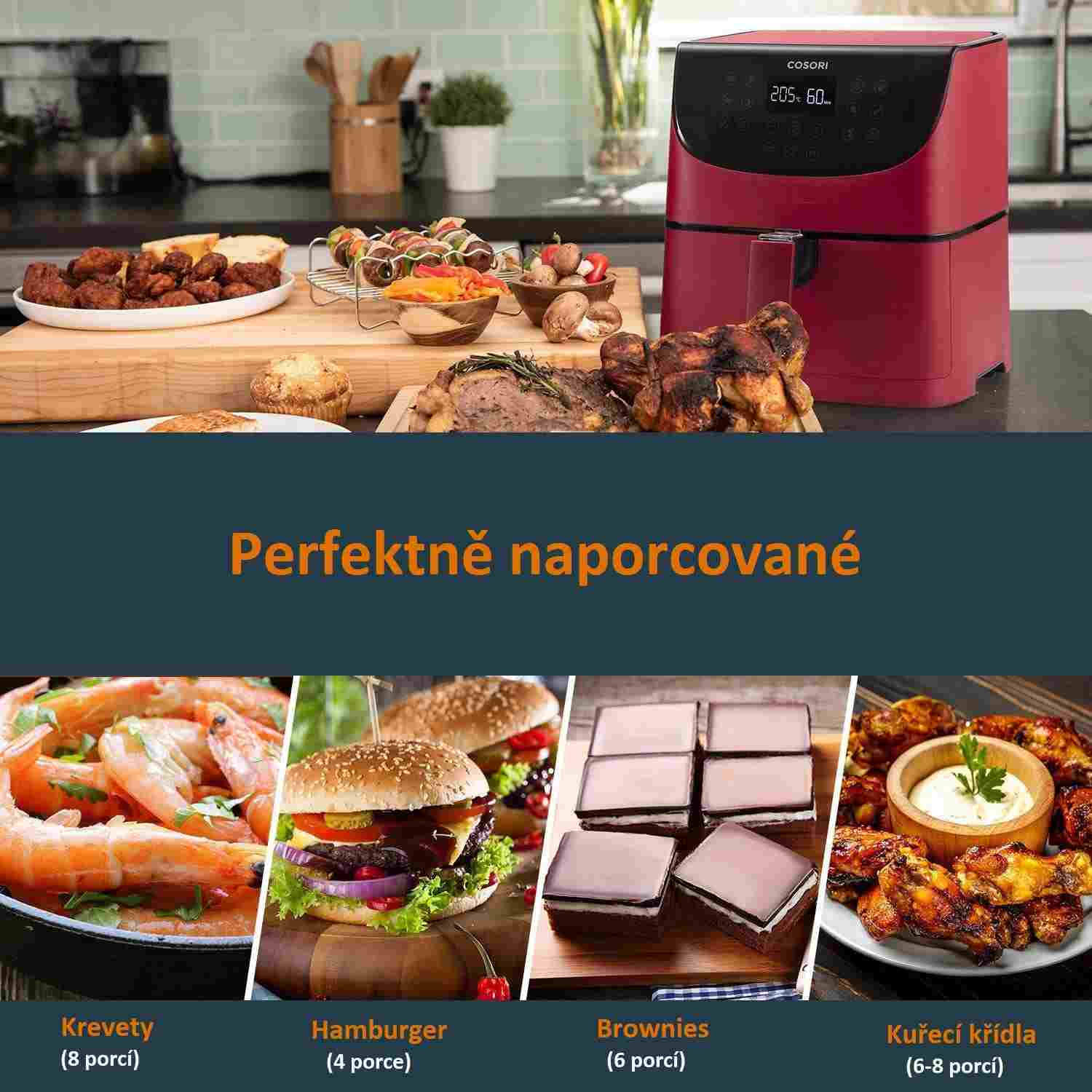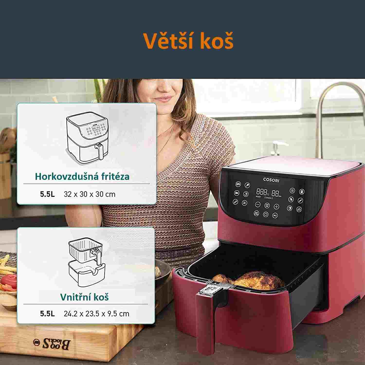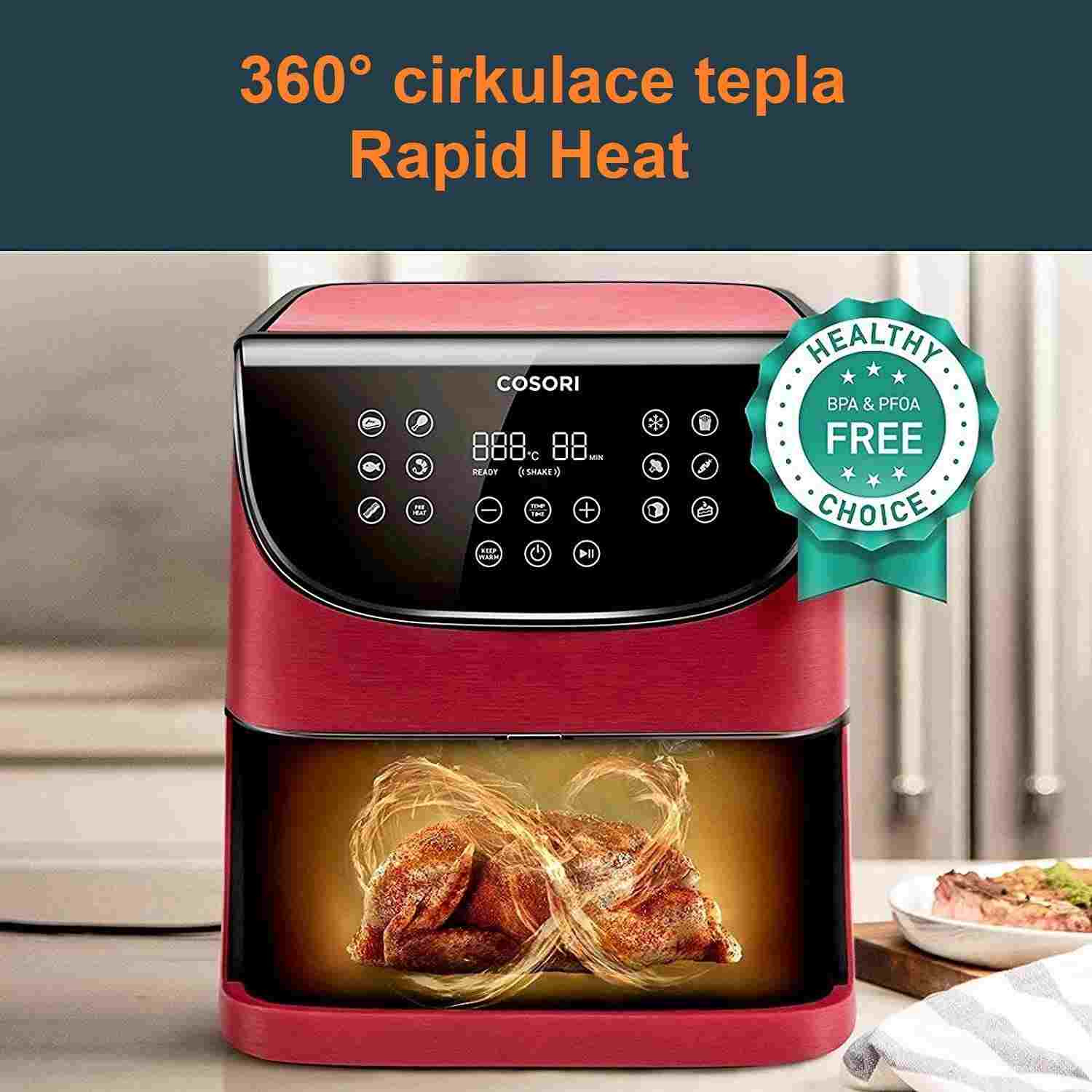 Cosori CP158-AF PREMIUM – 5.5L horkovzdušná fritéza + 5x špíz a gril. rošt, red