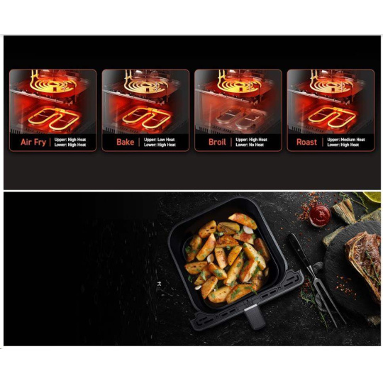 S horkovzdušnou fritézou COSORI CAF-P583S SMART si můžete užít vaše oblíbená smažená jídla bez výčitek, protože na rozdíl od běžného smažení nebo fritování je v této horkovzdušné fritéze možné připravovat jídla za použití velice malého množství oleje nebo vůbec žádného. Patentovaná technologie THERMO IQ 360° HEAT CIRCULATION přesně reguluje teplotu inteligentním teplotním algoritmem a zajišťuje tak rovnoměrně uvařené jídlo bez nutnosti jeho protřepání nebo překlápění. Kombinace cirkulujícího horkého vzduchu, dokonalé teploty vaření a chytrých programů zajistí, že hranolky budou vždy krásně křupavé a kuřecí stehna šťavnatá. Programy si můžete rychle a pohodlně nastavit také přes smartphone nebo Amazon Alexa a Google Assistant. Až budete mít hotovo, čištění bude stejně snadné díky nepřilnavému koši, který lze mýt v myčce. Díky veliké nádobě s objemem 6,4l navíc dokážete rychle navařit i pro větší rodinu nebo skupinu hostů.