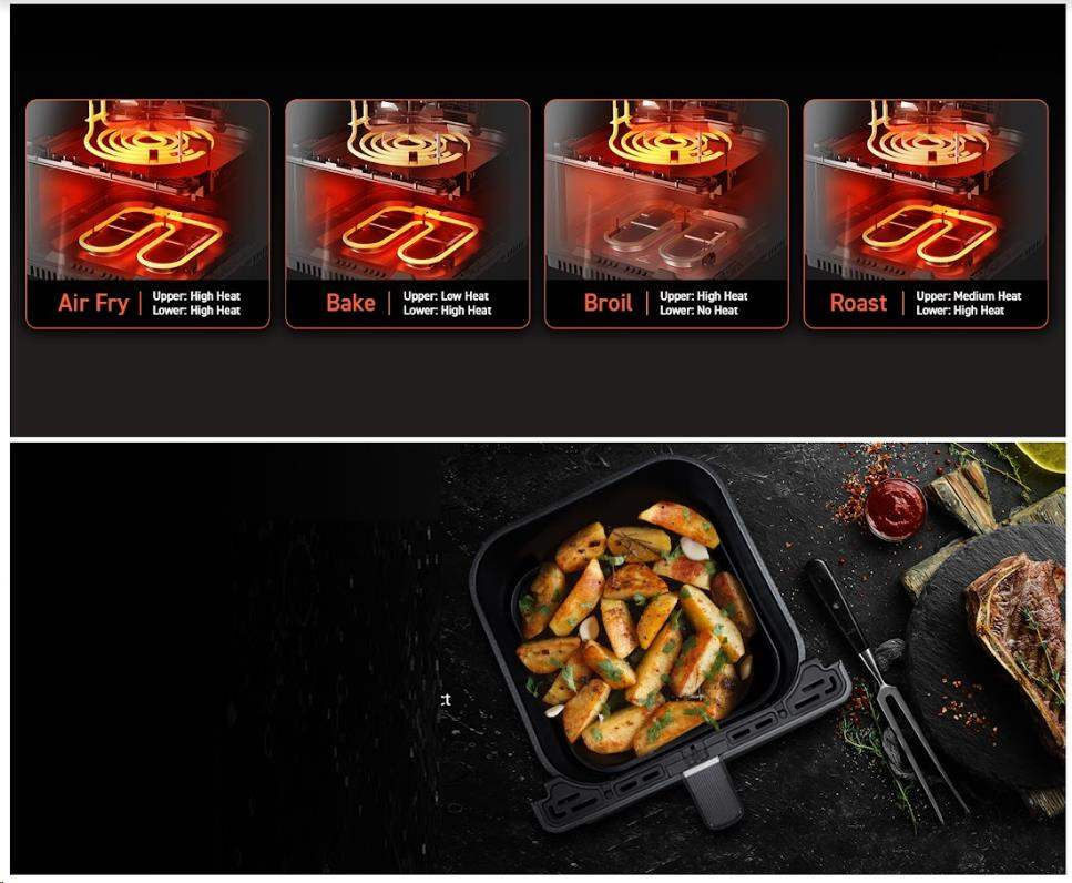 Horkovzdušná fritéza COSORI CAF-P583S se chlubí obrovským objemem koše 6.4 litru s praktickým čtvercovým tvarem, díky čemuž uspokojí i početnější domácnosti. S výkonem 1700 W je fritéza extrémně výkonná, což zkracuje dobu vaření a šetří tak elektrickou energii. Díky velikosti varného prostoru fritézy je možné připravit třeba i celé 3,5 kg kuře v kuse nebo 17 kuřecích křidýlek, která by se do fritézy s kruhovým košem nebo objemem 3-4l vešla jen velice těžko.