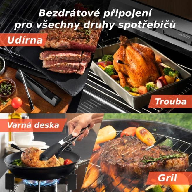 Inteligentní teploměr COSORI je navržen tak, aby se stal univerzálním pomocníkem v každé kuchyni. Lze jej bez problémů používat s různými kuchyňskými spotřebiči, jako je domácí trouba, BBQ gril, udírna nebo při vaření na klasickém sporáku. Teploměr je tak ideální pro všechny, kdo chtějí dosáhnout dokonalých výsledků bez ohledu na to, jakou metodu vaření zvolí.