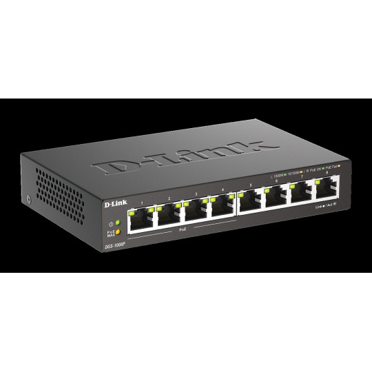 D-Link DGS-1008P 8-port Gigabit Desktop Switch, 4 porty jsou PoE+, PoE budget 68W