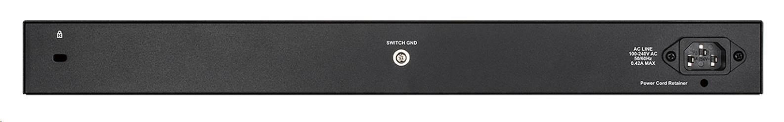 24-port 10/100/1000 Gigabit Smart Switch + 4 SFP - 24 x 10/100/1000Mbps Auto-Negotiating Ports - 4x 1000Mbps SFP port - dlink|green 3.0, advance power saving features - 802.3az Energy Efficient Ethernet (EEE) port power save in idle mode - Half-/Full-Duplex, auto-negotiation, Auto MDI/MDIX - Jumbo frames up to 13000 bytes, 16K MAC-addresses - IEEE 802.3x Flow Control - 802.3ad Link Aggregation - Asymmetric VLAN, Auto Voice/Surveillance VLAN - Traffic Segmentation - 802.1p priority queues - MAC/IP filtering - MAC/IP-based ACL - 802.1X port-base Access Control, Port Security - D-Link Safequare Engine - IPv6 Ready - D-Link Network Assistant Utility (DNA) from firmware ver. 4.1, web based management, compact CLI, IPv6 Ready - D-View 6.0 support - 0-50°C operating temperature - 19" Rackmount Installation.