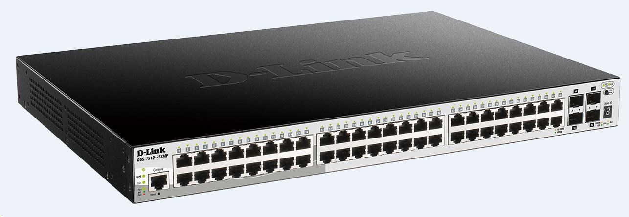 D-Link DGS-1510-52XMP 52-Port Gigabit Stackable PoE Smart Managed Switch including 4 10G SFP+, 370W PoE budget