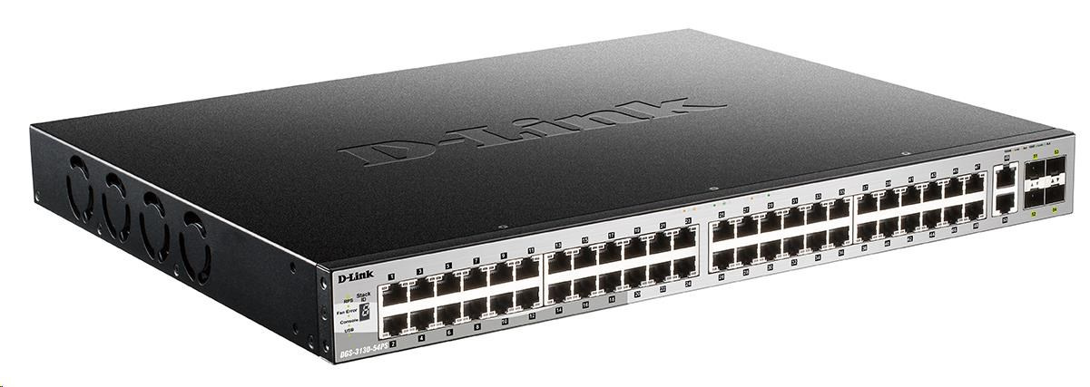 D-Link DGS-3130-54PS/SI L3 Stackable Managed Gigabit PoE Switch, 48x PoE gigabit, 2x 10GBASE-T, 4x SFP+, 370W PoE