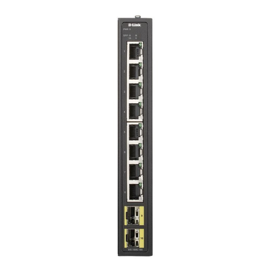 D-Link DIS-100G-10S Průmyslový Gigabit unmanaged switch, 8x GbE, 2x SFP, DIN