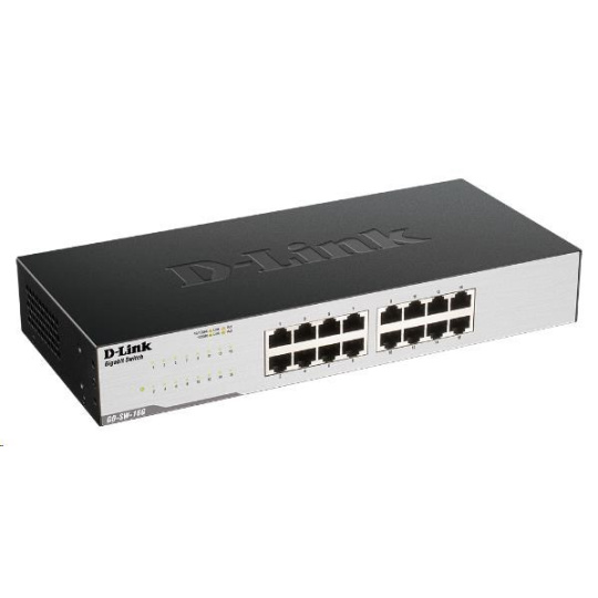 16-Port GIGABIT EASY DESKTOP SWITCH - 16-Port Gigabit Switch - Auto MDI.MDIZ crossover for all ports - Full/half-duplex for Ethernet / Fast Ethernet speeds - Plug-and-play installation - Energy Star Level V qualified - D-Link Green (Automatic port powerdown for unused ports) - Metal housing, black, Desktop and Rackmount (Rubber feet and Rackmount kit included), 1 HE.