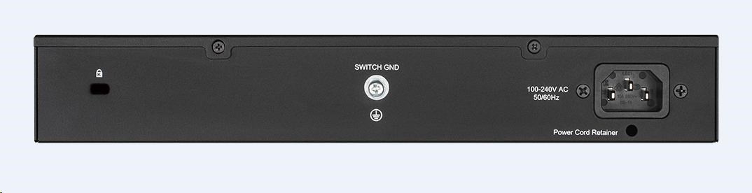 • 16 or 24 Gigabit LAN ports for high-speed wired connections • Plug-and-play installation for convenience Reliability • Embedded 4 kV surge protection on all Gigabit Ethernet ports • Durable metal housing • Rack mountable • Fanless design Energy-Efficient and Eco-Friendly • Reduces power to a port when there is no traffic • Optimises power usage of a port based on the length of the cable connected to it • Energy-efficient design reduces heat generated and allows switch to run silently 24-Port GIGABIT EASY DESKTOP SWITCH - 24-Port Gigabit Switch - Auto MDI.MDIZ crossover for all ports - Full/half-duplex for Ethernet / Fast Ethernet speeds - Plug-and-play installation - Energy Star Level V qualified - D-Link Green (Automatic port powerdown for unused ports) - Internal universal PSU w/ power cord - Metal housing, black, Desktop and Rackmount (Rubber feet and Rackmount kit included), 1 HE.