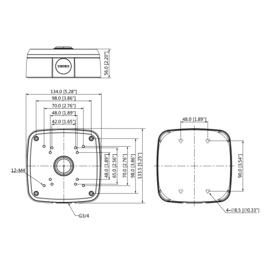 Dahua PFA121-V2, zapojovací box hranatý univerzální