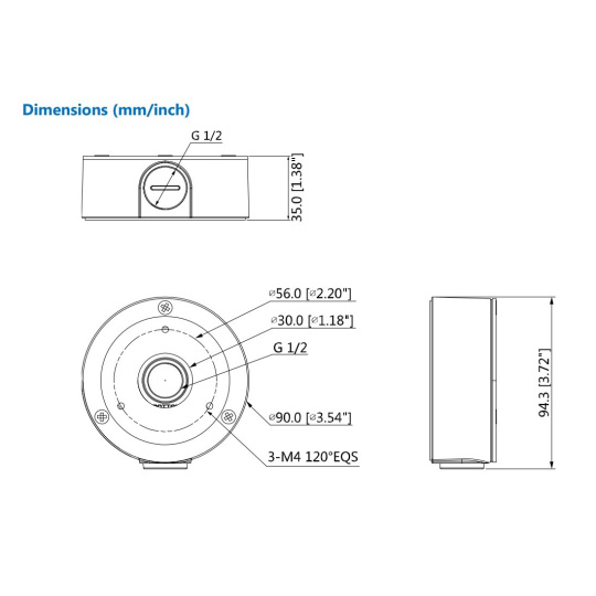 Přídavný límec pro Dahua kamery FW181G, HAC-HFW [SP], IPC-HFW [SP], HAC-HFW [RP], kompatibilní příslušenství PFA150, PFA151, rozměry O 90 x 36,1 mm, hmotnost 0,24 kg.