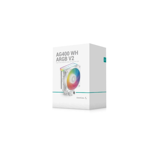 DeepCool AG400 WH ARGB V2 je celobílý jedno-věžový chladič CPU zaměřený na vysokou výkonnostní účinnost, který se pyšní čtyřmi tepelnými trubicemi zabalenými v husté věži chladiče pro optimální odvod tepla a spárovanými s jemně vyladěným 120mm ARGB PWM ventilátorem pro výkonné chlazení.
