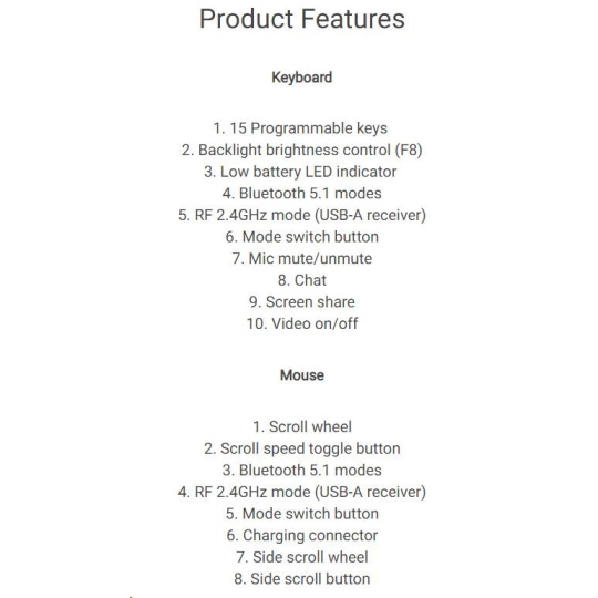Rozhraní klávesnice:Bezdrátová; Lokalizace klávesnice:EN; Výbava klávesnice:Podsvícené klávesy.